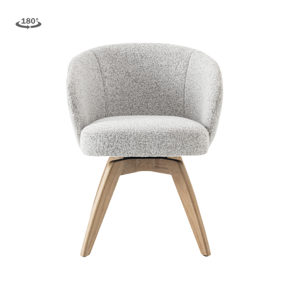 Breng een vleugje moderne elegantie naar je interieur met de Brescia Armstoel in de tijdloze kleur beige wit. Deze stoel is niet alleen een lust voor het oog, maar straalt ook comfort uit met zijn uitnodigende ontwerp en zachte, textuurstof. Perfect voor wie op zoek is naar stijl en comfort in één. De armstoel Brescia is voorzien van een draai mechanisme waardoor deze eetkamerstoel ook nog eens draaibaar is. IN SHOWROOM AANWEZIG