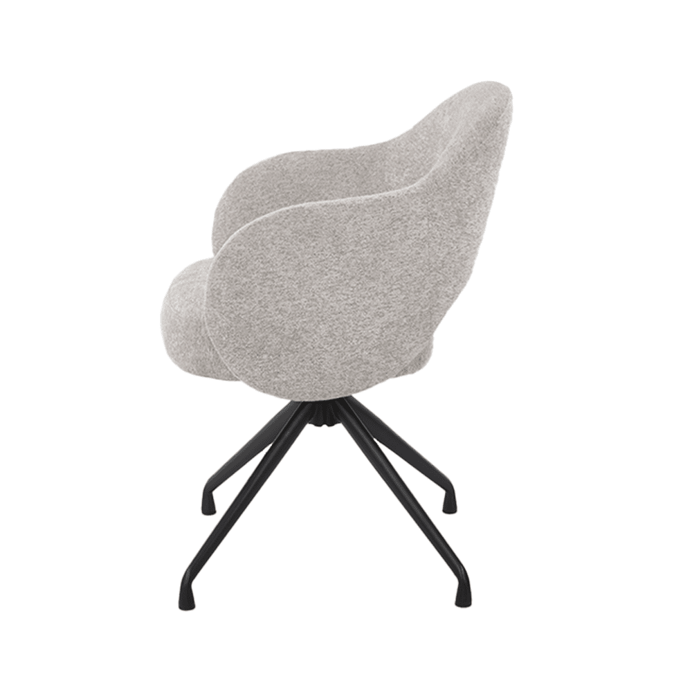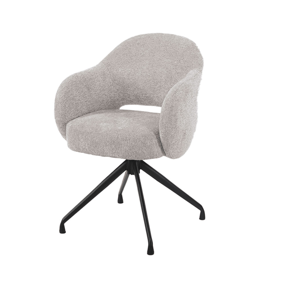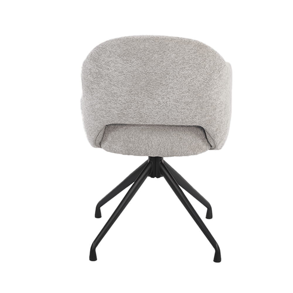 Wat deze stoel echt bijzonder maakt, is de draaibare basis. Met een soepele 360-graden draaiing kun je gemakkelijk van richting veranderen zonder op te staan. Dit maakt de stoel ideaal voor dynamische omgevingen zoals een eetkamer of een kantoor.