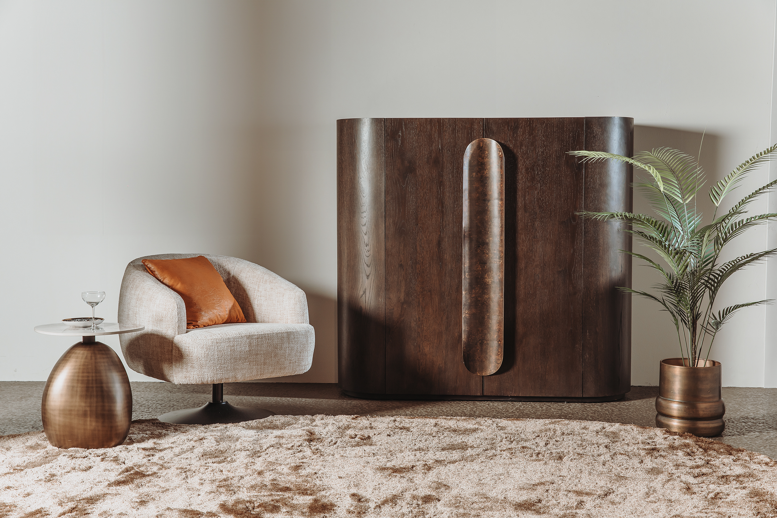 met een mat bronzen finish. Bij deze tafels is het niet aan te raden om op de rand van